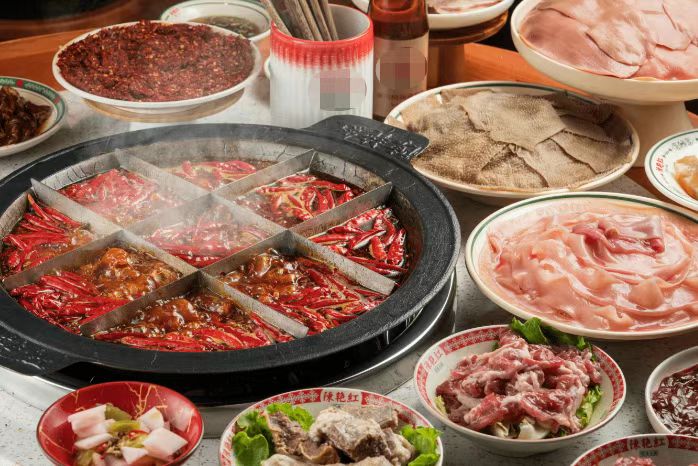成都火锅对食材加工少,食材丰富,菜品多达几百种,以传统的毛肚火锅的"牛杂"到今天的家禽、水产、海鲜、野味、动物内脏、各类蔬菜和干鲜菌果等,成都火锅的品种可以说数不尽数了;用一句话概括就是凡是能吃的食物都可以在火锅中煮或烫食。